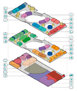 Los volúmenes que rodean esta plaza alojan los programas cerrados —biblioteca, teatro, aulas, comedores, administración y servicios— y se disponen de manera independiente para facilitar la circulación, optimizar la claridad funcional y permitir futuros ajustes según las necesidades del proyecto. Esta estrategia no solo mejora la experiencia educativa, sino que favorece la gestión eficiente de los espacios y su mantenimiento a largo plazo. Mediante la propuesta volumétrica, esta responde con precisión a la topografía y al entorno construido mediante una escala controlada y fragmentada.